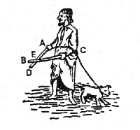 89. In answer to this difficulty we are told that the mind, perceiving an impulse of a ray of light on the upper part of the eye, considers this ray as coming in a direct line from the lower part of the object; and in like manner tracing the ray that strikes on the lower part of the eye, it is directed to the upper part of the object. Thus in the adjacent figure, C, the lower point of the object ABC, is projected on c the upper part of the eye. So likewise the highest point A is projected on a the lowest part of the eye, which makes the representation cba inverted: but the mind considering the stroke that is made on c as coming in the straight line Cc from the lower end of the object; and the stroke or impulse on a as coming in the line Aa from the upper end of the object, is directed to make a right judgment of the situation of the object ABC, notwithstanding the picture of it is inverted. This is illustrated by conceiving a blind man who, holding in his hands two sticks that cross each other, doth with them touch the extremities of an object, placed in a perpendicular situation. It is certain this man will judge that to be the upper part of the object which he touches with the stick held in the undermost hand, and that to be the lower part of the object which he touches with the stick in his uppermost hand. This is the common explication of the erect appearance of objects, which is generally received and acquiesced in, being (as Mr. Molyneux tells us[6]) 'allowed by all men as satisfactory'.